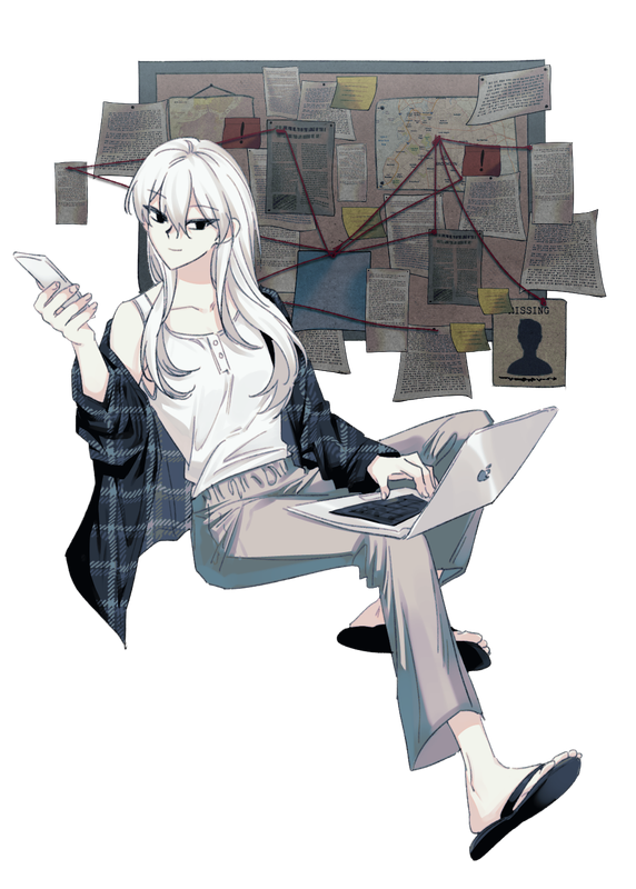 -사설 탐정 일을 하고 있다. 당연히 탐정 면허도 없는 불법. 대부분의 사건을 의뢰받지만 딱 하나의 조건을 내걸었다. '경찰국에서 손을 뗀 사건'일 것. 음지에서 알음알음 입소문을 타는 정도의 인지도. 혼자 먹고 사는 데에는 문제없이 번다. 주로 실종 사건 전문.